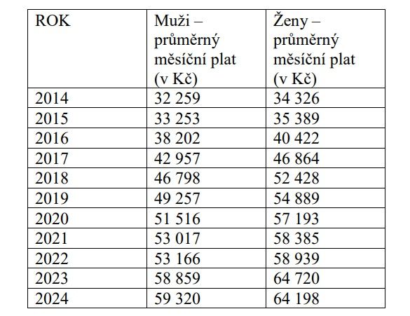 Průměrný plat vojáka v roce 2014 činil 32 259 korun, zatímco žena v uniformě pobírala 34 326 korun. O deset let později, v roce 2024, bral voják průměrně 59 320 korun, zatímco vojačka 64 198 korun. Jen v letošním roce se platy zvedly hned dvakrát, o více než tři tisíce korun, a to jak u mužů, tak u žen. Platový rozdíl mezi muži a ženami tak přetrvává a v některých letech se dokonce lehce prohlubuje.