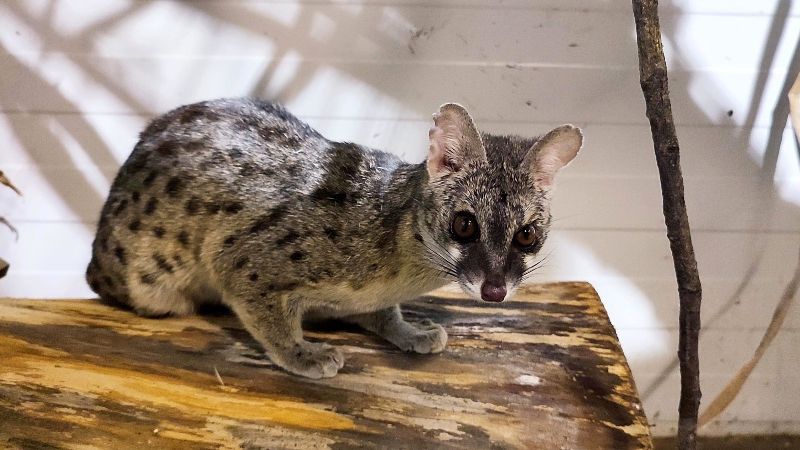 „Samici ženetky zachránila naše dlouholetá kolegyně z velmi podivného chovu. Vlivem velkého stresu se začala poškozovat a vytvořila si tak velice nezdravý zlozvyk. To mělo za následek okousání části ocasu. Po převzetí zvířete do naší péče jsme ihned začali s léčbou,“ řekla Jana Ambrožová ze zoo Dvorec na Českobudějovicku.