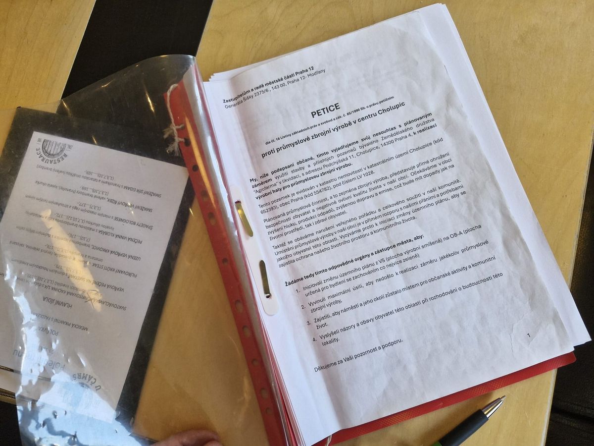 Proti projektu z iniciativy Sdružení pro rozvoj Cholupic proto během léta vznikla petice, kterou dle zjištění Novinek k odpoledni 29. září fyzicky přímo v Cholupicích podepsalo už 425 lidí. „Plánovaná průmyslová činnost, a to zejména zbrojní výroba, představuje přímé ohrožení bezpečnosti obyvatel a negativně ovlivní kvalitu života v naší obci,“ stojí v dokumentu.