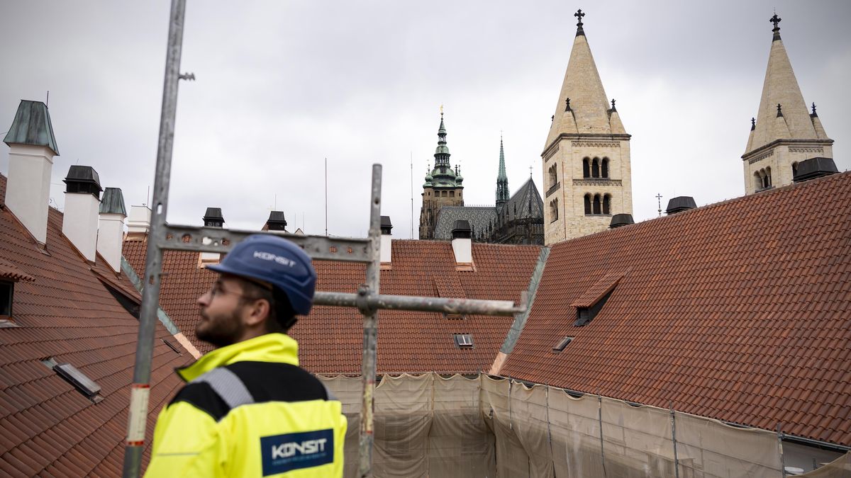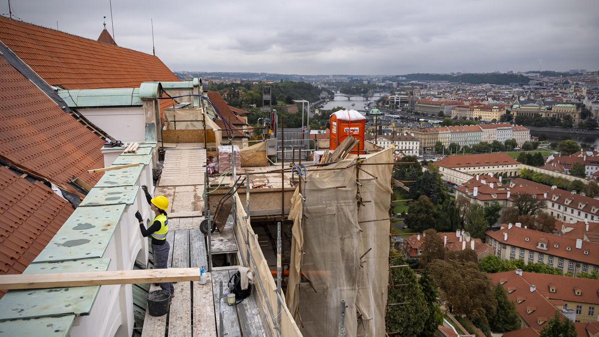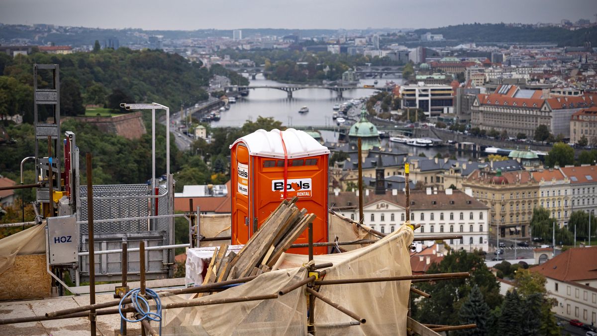FOTO: Panorama Hradu se barví dozelena, dělníci mají záchod s nejlepším výhledem v republice