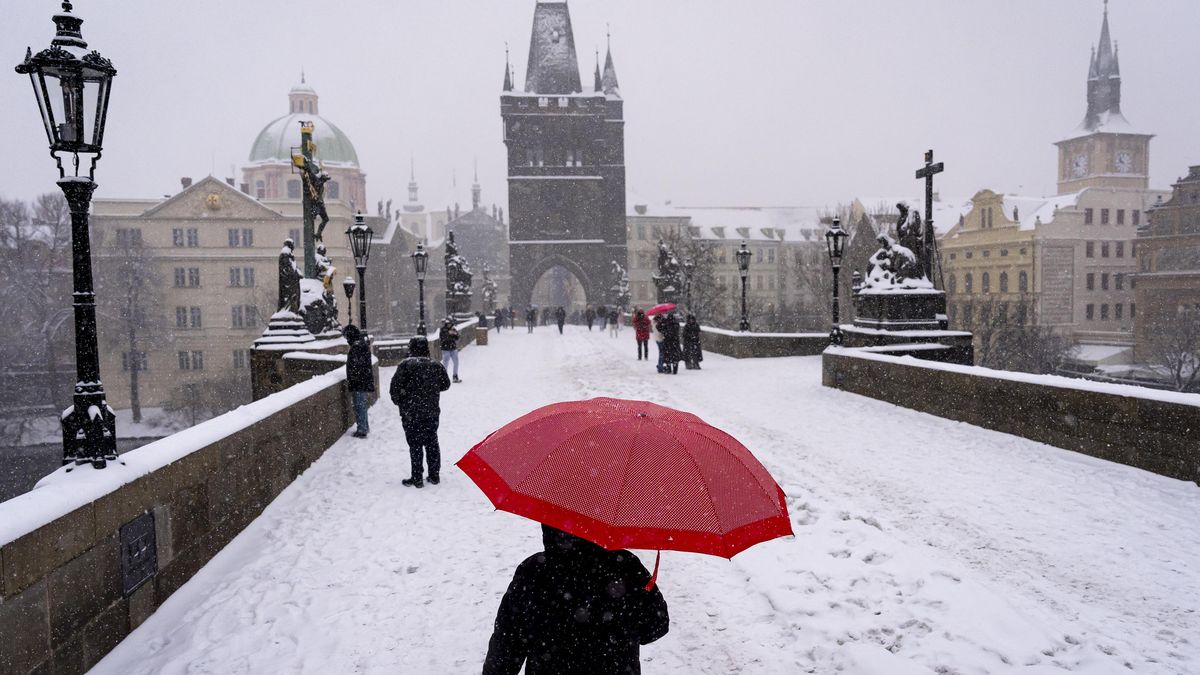 FOTO: Zasypaná Praha. Památky osiřely a sníh komplikoval dopravu