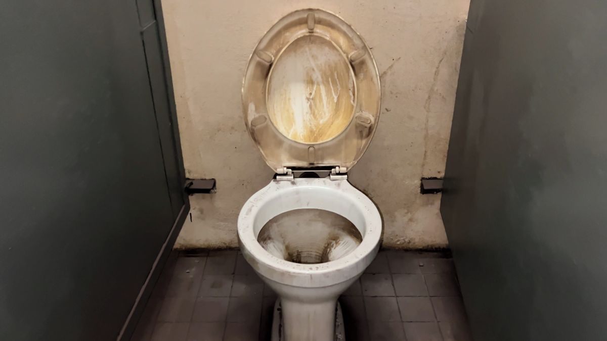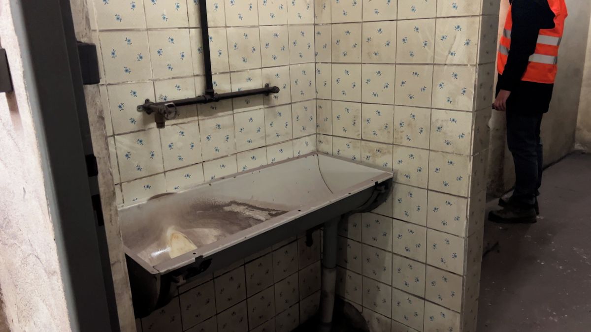 Jak vidíme při prohlídce, na ne úplně udržované toalety se tu chodí jen velmi sporadicky, třeba když si musí zaměstnanec při noční údržbě nutně odskočit. „Záložní“ toalety jsou sice velmi spartánské, ale stále dělené na pánské a dámské.