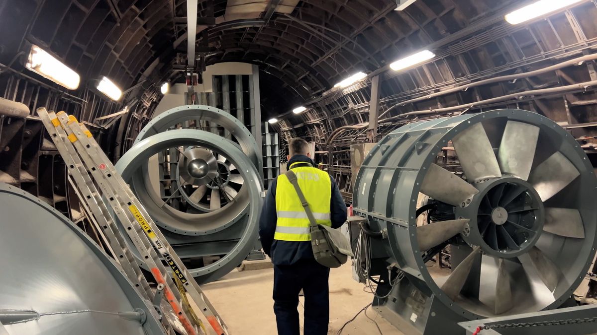 Vzal nás také do tunelu, kterým se do stanice dostává nebo z ní případně odchází vzduch. Je právě v rekonstrukci, i tak si ale můžeme složitý systém větráků, které jsou součástí „plic metra“, představit.