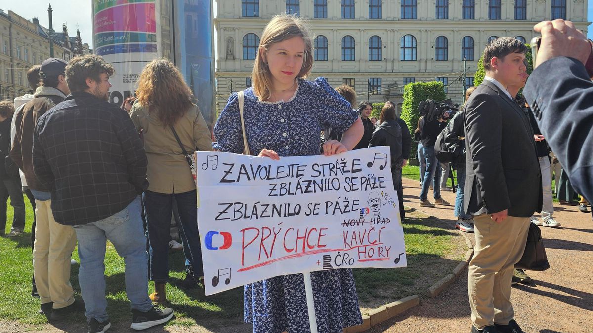 Náměstí Jana Palacha zaplnili studenti s transparenty.