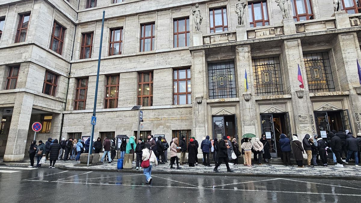 V sobotu, o třetím adventním víkendu, tu krátce po poledni čekalo v dlouhé šňůře zhruba 180 lidí. Redaktor Novinek sleduje tento fenomén průběžně půl roku a lidé jsou ochotni stát na místě i 45 minut před otevřením knihovny. Stojí tu každý den, v každém ročním období.