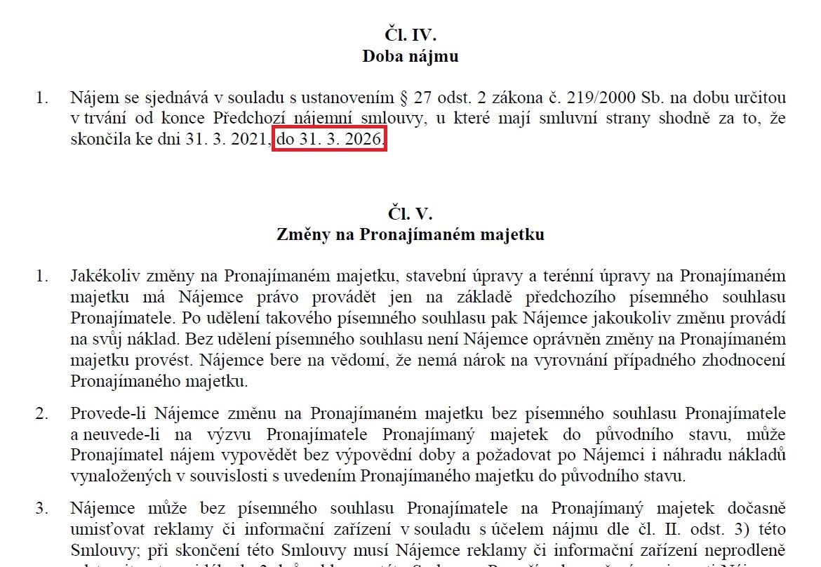 Smlouva mezi ministerstvem financí a PVA Expo stanovuje ukončení nájmu na březen 2026.