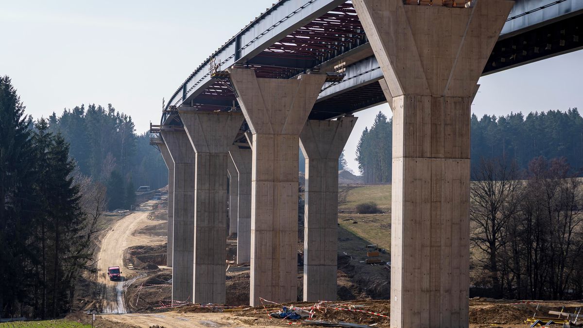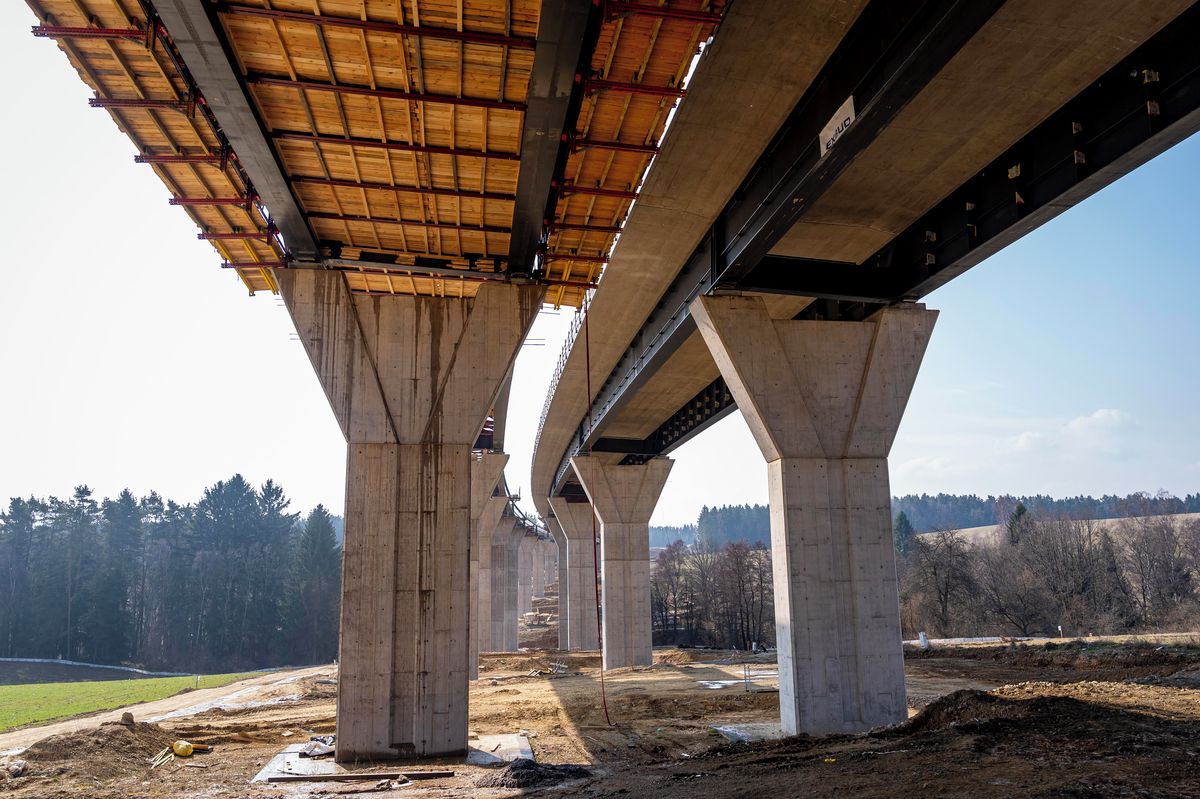 Stavba mostů na budoucí dálnici D3 u Rakouských hranic