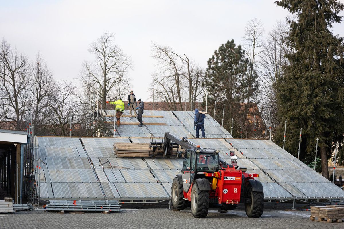 Organizátoři staví sjezdovku a připravují další sportoviště.