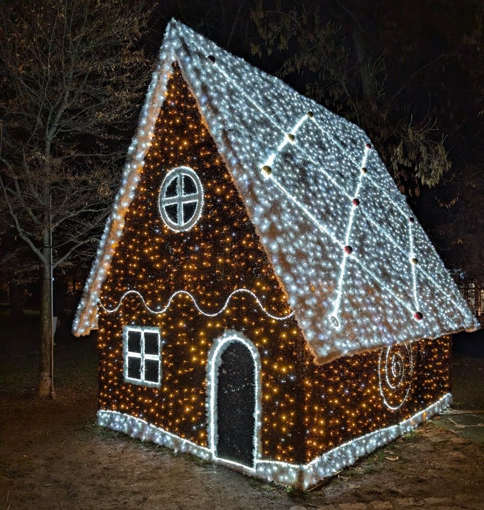 Perníková chaloupka pochází dle radních Českých Budějovic z dílny francouzské firmy LeBlanc Illuminations, což je přední světový výrobce světelné výzdoby s osmdesátiletou tradicí. Perníková chaloupka je vysoká téměř čtyři metry, rozměry má 4,2×4,2 metru a zdobí ji 12 500 LED světel. Město za ni zaplatilo milion korun.