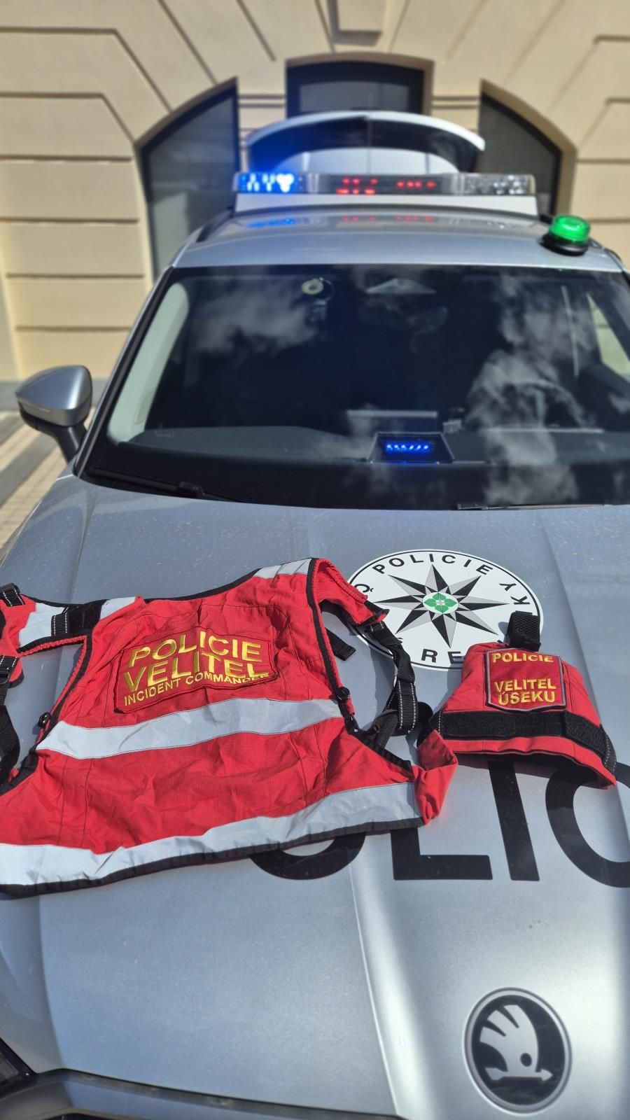 „Nesmí chybět zelený maják, který v případě nasazení velitele policie do akce jasně upozorňuje na jeho přítomnost na místě zásahu a zároveň určuje, že toto místo je aktuálně štábem,“ upozornila policejní mluvčí.