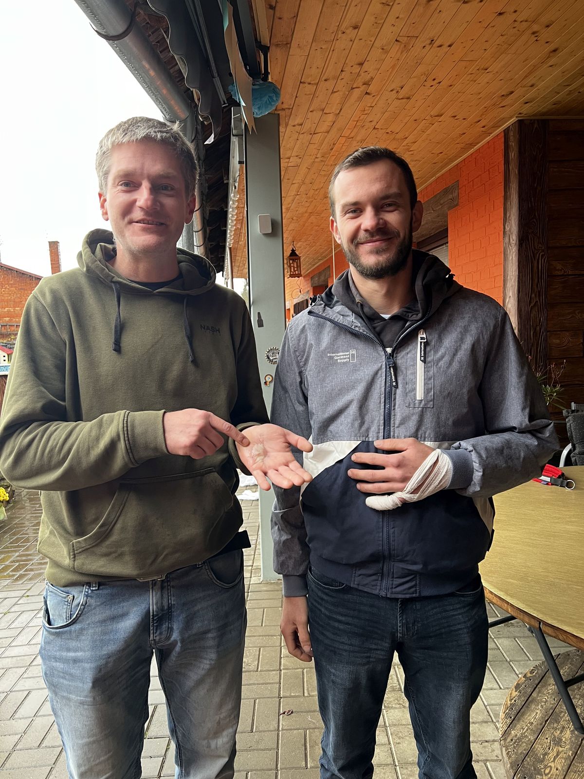 To už za ním běžel i Martin. Plot a ostnatý drát rychle roztáhli tak, že vznikla jakási kapsa, kterou se snažili muže protáhnout. „Chytli jsme ho za hořící bundu a táhli ven přes plot. Kdybychom nebyli fyzicky zdatní, nedáme to,“ přiznává Tomáš. „Navíc, jak mu hořela ta bunda, oba od ní máme popálené ruce a zbytky látky seškvařené v dlaních,“ ukazuje Martin Bublík ruce.