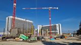 Nový pavilon, který bude patřit samostatné organizaci CKTCH, se tyčí nedaleko výškové budovy Fakultní nemocnice Brno.
