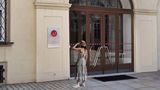 Pamětní deska visí na zdi Nové radnice