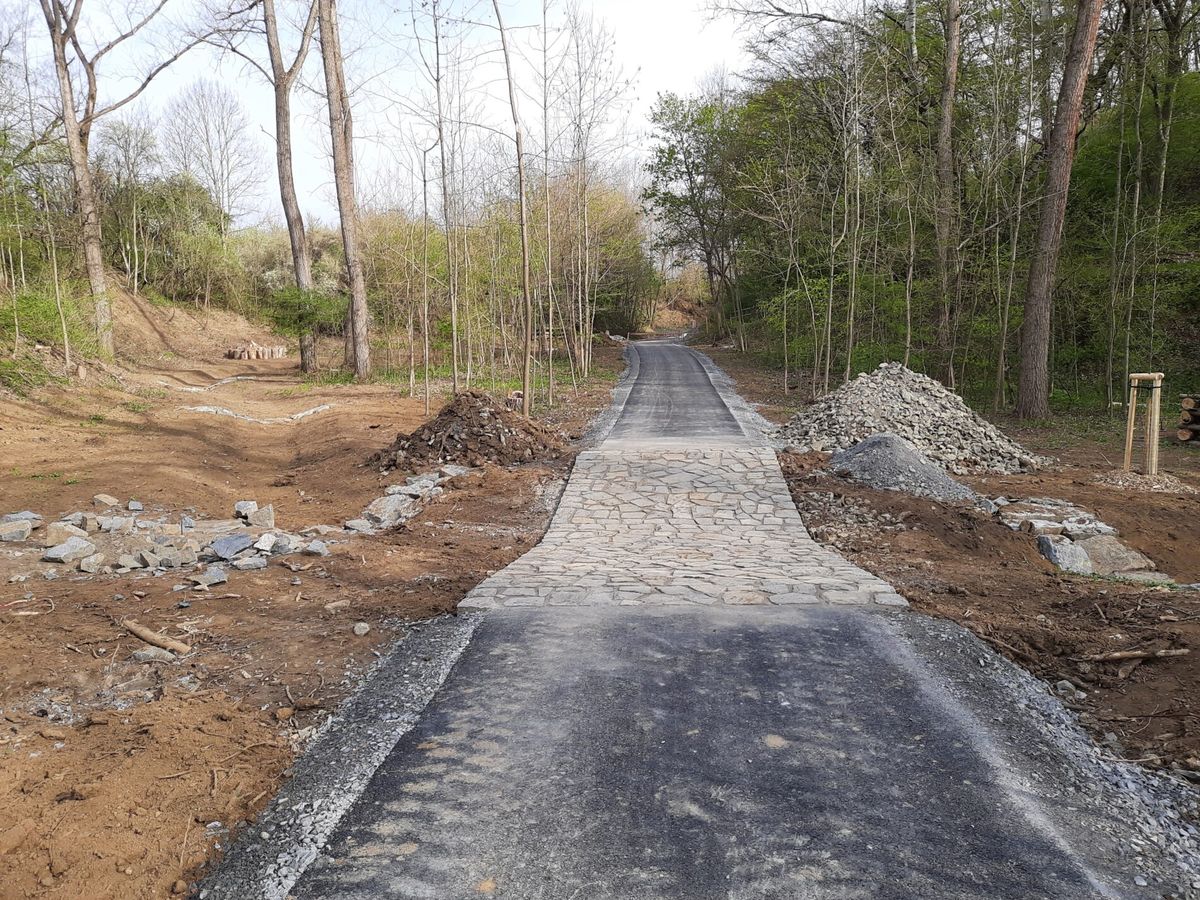 Cyklostezka Brno-Jinačovice-Kuřim. Kuřim si pozemky pro ni musela ve svém katastru odkoupit od Brna.