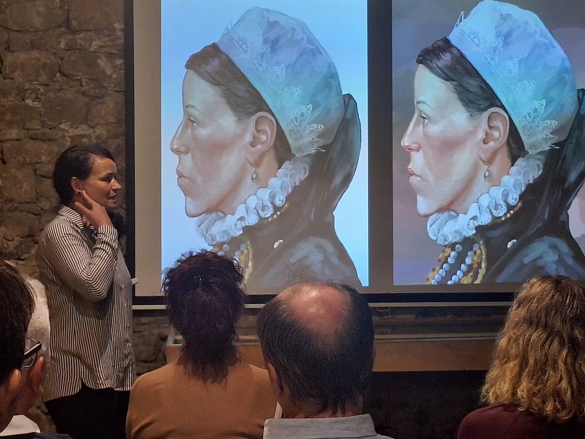 Kam se dokutálely dukáty za Kuřim? Antropoložka Eva Vaníčková z Moravského zemského muzea ukazuje portrét Lukrécie Nekešové, pravnučky kuřimského vladyky Zikmunda.