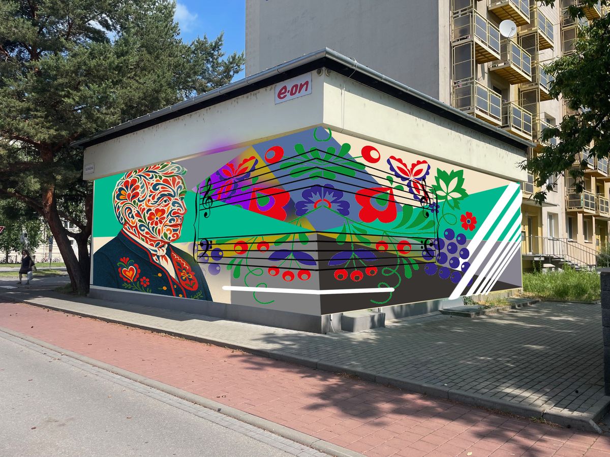„Barevná stylizace inspirovaná lidovým dekorem podtrhuje jeho celoživotní spojení s jihomoravským regionem a hudební tradicí,“ uvedl Lukáš Veselý z ateliéru Malujeme jinak. „Trafostanice se prostřednictvím této malby proměňuje v živý pomník moravské písni a jejímu nejvýznamnějšímu interpretovi – Jožkovi Černému.“