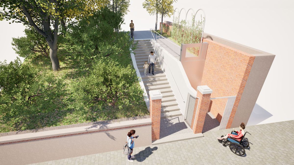 „Historické schodiště z ulice Botanické je již ve špatném stavu. Projde proto rekonstrukcí s využitím stávajících kamenných stupňů. Bezbariérový přístup nově zajistí svislá zvedací plošina mezi schodištěm a hranicí parku u budovy Husova sboru,“ popsal starosta městské části Brno-střed Vojtěch Mencl (ODS).