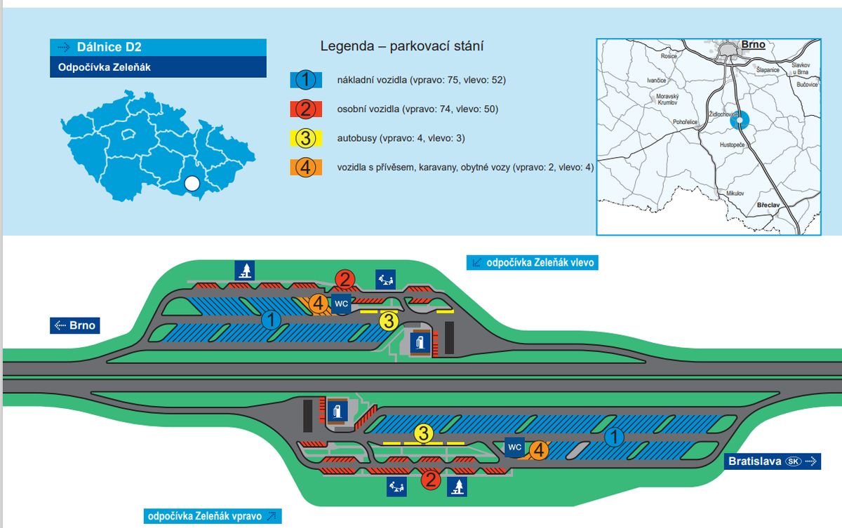 V rámci rozšíření odpočívky Zeleňák v obou směrech vzniklo více parkovacích míst. „Zvýší se i úroveň služeb,“ říká mluvčí jihomoravských silničářů Lucie Trubelíková.