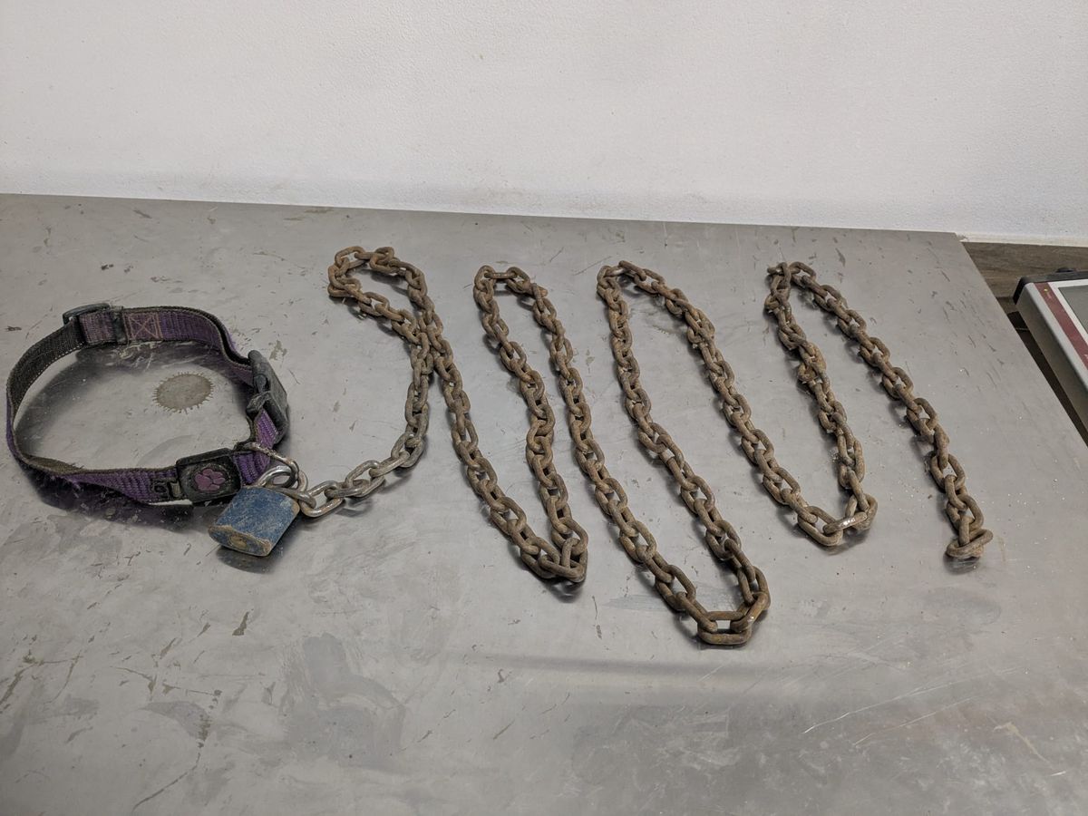 Řetěz, kterým byl pes uvázán ke stromu