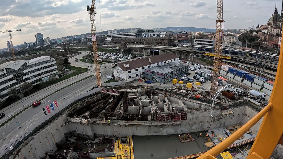 Ze staveniště odvezli nákladní auta 247 tisíc kubíků zeminy. „Zatímco na jedné straně po skončení archeologického výzkumu stále probíhají zemní práce, na té druhé pokračujeme s podkladním betonem a piloty s tím, že bychom měli dokopat veškerou hlínu do poloviny června,“ uvádí Štěpánek.