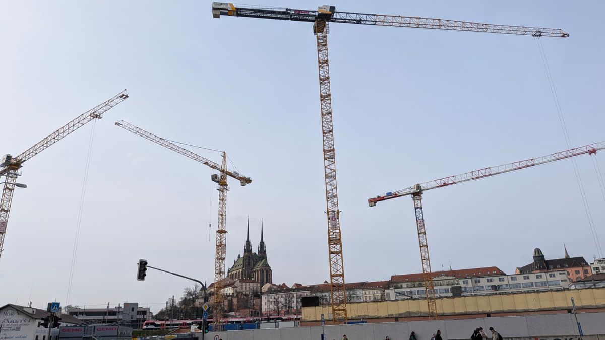 Staveniště v centru města o velikosti čtyř fotbalových hřišť denně sledují tisíce lidí, kteří tudy procházejí. Pracují tady aktuálně čtyři jeřáby. „Pátý budeme co nevidět stavět a celkem jich bude devět,“ uvádí manažer developerské společnosti Crestyl Martin Štěpánek.