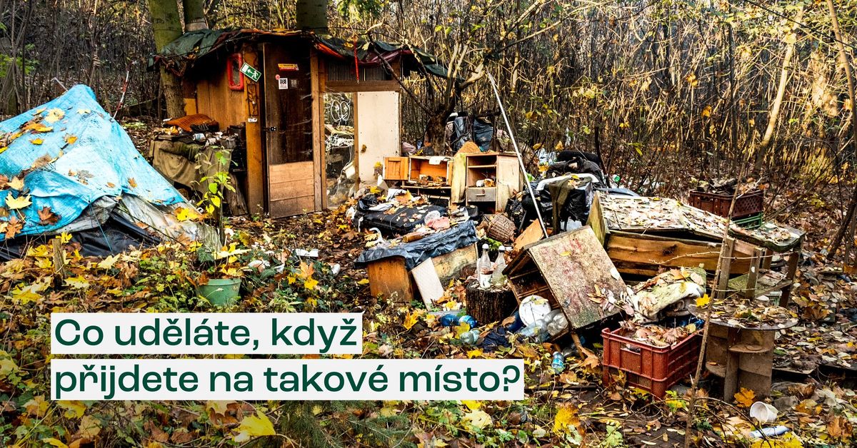 Jedna z původních skládek v lese pod Špilberkem na letáku Nadace Partnerství.