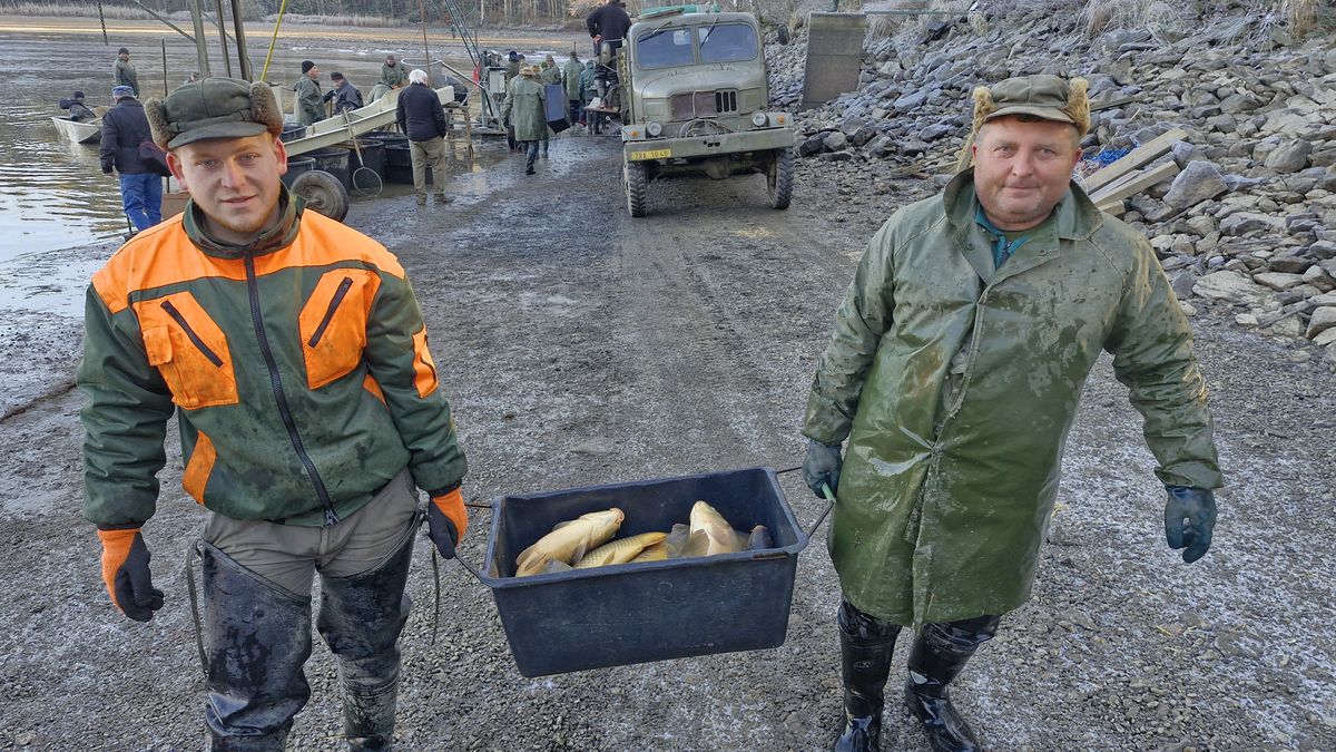 Až šestistupňový mráz dotvořil ve středu kulisy výlovu největšího rybníka Vysočiny. Dvousethektarové Velké Dářko na Žďársku loví rybáři společnosti Kinský Žďár jednou za dva roky už tradičně přes spodní Nový rybník, kam v závěru vypouštění vody přeženou rybí obsádku. I když přírůstky tady nebývají tak velké, protože rybáři mají v chráněné krajinné oblasti omezené hospodaření, vylovili nejen břichaté šupináče s ochrannou známkou Žďárský kapr, ale také třeba trofejní štiky a oblíbené candáty. Část ryb odtud poputuje i na vánoční stůl.