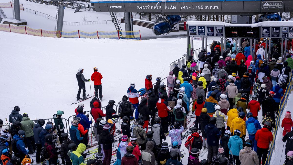 Konečně! S příchodem roku 2026 napadly na nejvyšších českých horách desítky centimetrů sněhu a do Špindlerova Mlýna, jednoho z nejpopulárnějších lyžařských středisek, se vydaly spousty lyžařů. Před prvními oblouky s novým datem si ale nadšenci museli počkat, třeba v husté dopravě, kvůli plným parkovištím nebo ve frontách pod lanovkami.