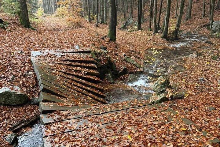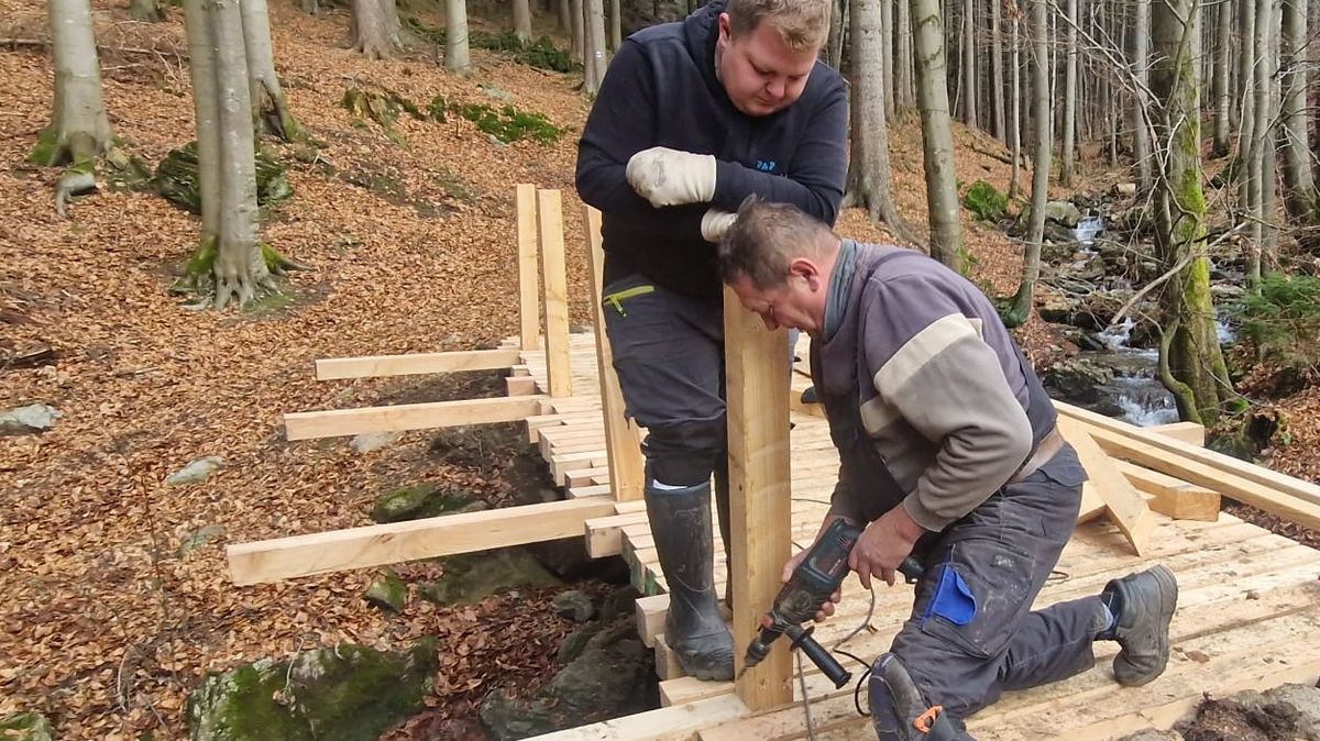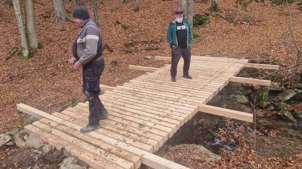 „Když jsme se o rozbitém mostku dozvěděli, bylo právě po sněžení a vypadalo to, že tu sníh zůstane až do jara. Pak nám ale počasí nečekaně poskytlo pár týdnů. Díky tomu jsme mohli mostek opravit ještě letos,“ uvedl mluvčí Správy národního parku Radek Drahný.
