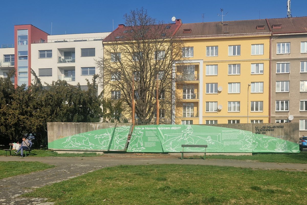 Po roce 1989 totiž ztratil betonový monument smysl a začal chátrat. Velkou pěticípou hvězdu postupně zakryla zeleň. Lidé o ní věděli, ale neviděli ji. Odkryla se až letos v půli března, když byl vzrostlý tis pokácen. Byla to první ze změn, které prostranství, vymezené Gočárovou třídou, ulicí U Koruny a Sukovými sady, v budoucnu čeká.