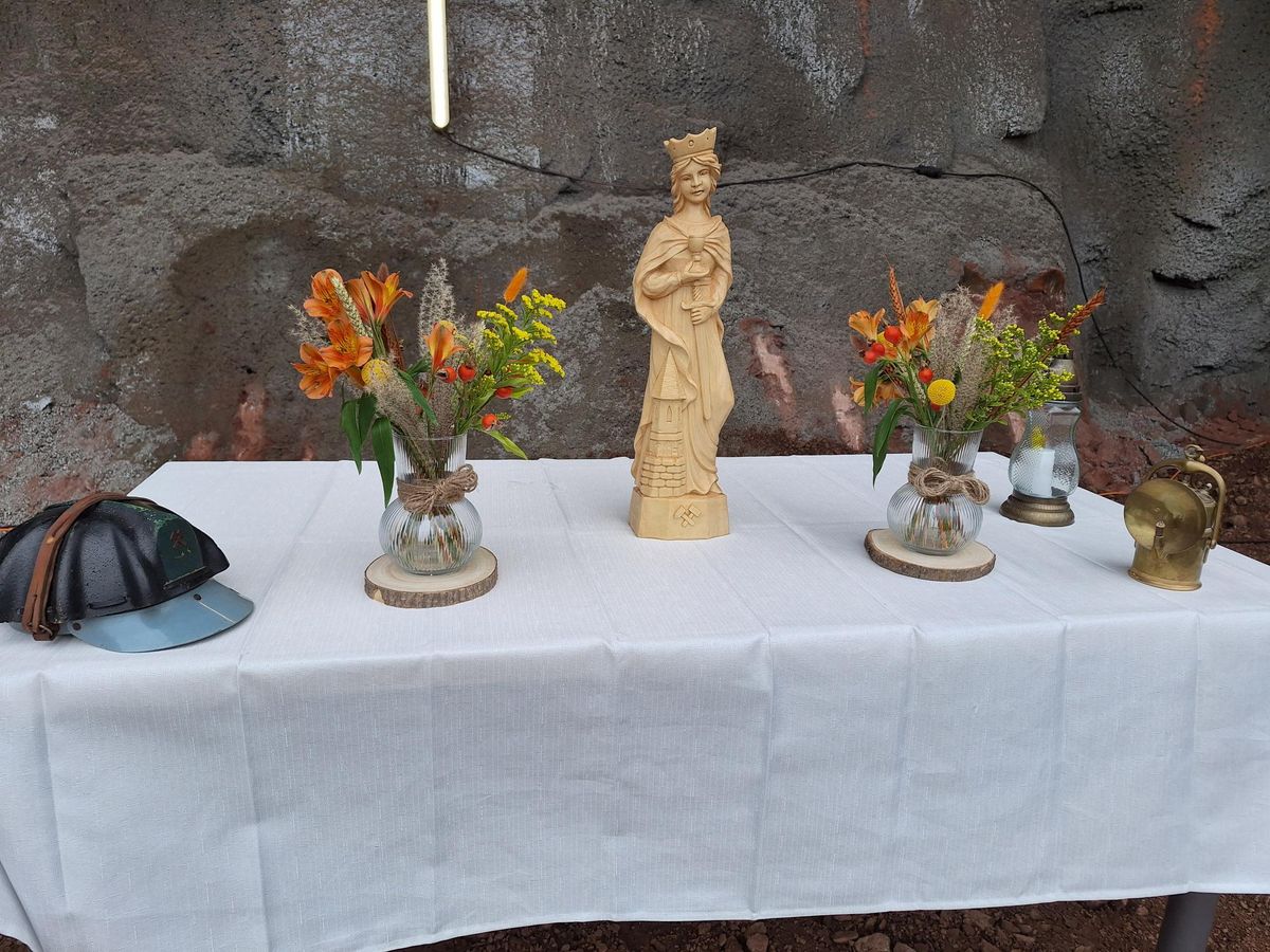 Dřevěná soška svaté Barbory z tunelu v Dolní Radechové.