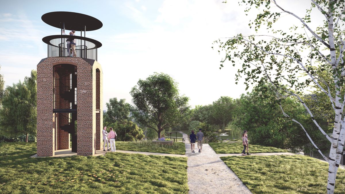 Výraznou roli na podobě parku sehrají architektonické prvky, které prostoru dodají charakter i funkční využití. V horní části vyroste vyhlídková věž, pod svahem altán určený k odpočinku a mezi nimi amfiteátr využívající přirozený sklon terénu. V blízkosti Schubertovy vily dojde k obnově historické fontány a k rekonstrukci studny. Návrh zároveň počítá s využitím materiálů z demolovaného areálu továrny Bekon, které se objeví například v mobiliáři nebo v konstrukcích záhonů a připomenou industriální minulost místa.
