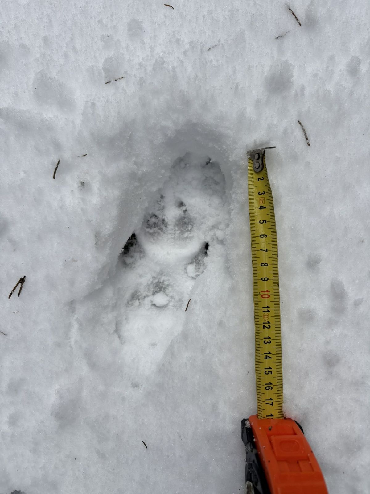 Vlčí stopa objevená při monitoringu vlků v CHKMO Kokořínsko - Máchův kraj.