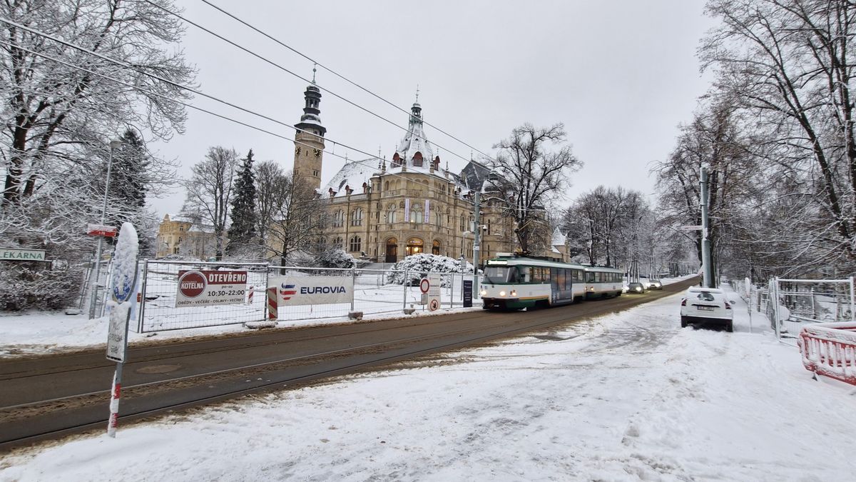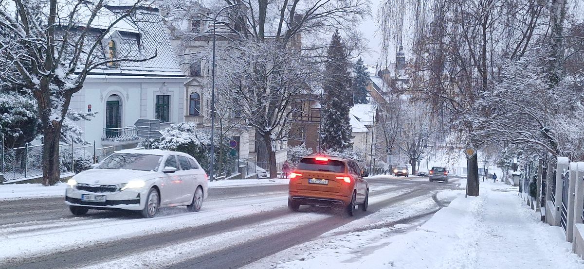 Sníh už od rána komplikuje dopravu i na dalších tazích, například na Frýdlantsku, kde kvůli vrstvě sněhu uvízly vozy na Albrechtickém kopci.