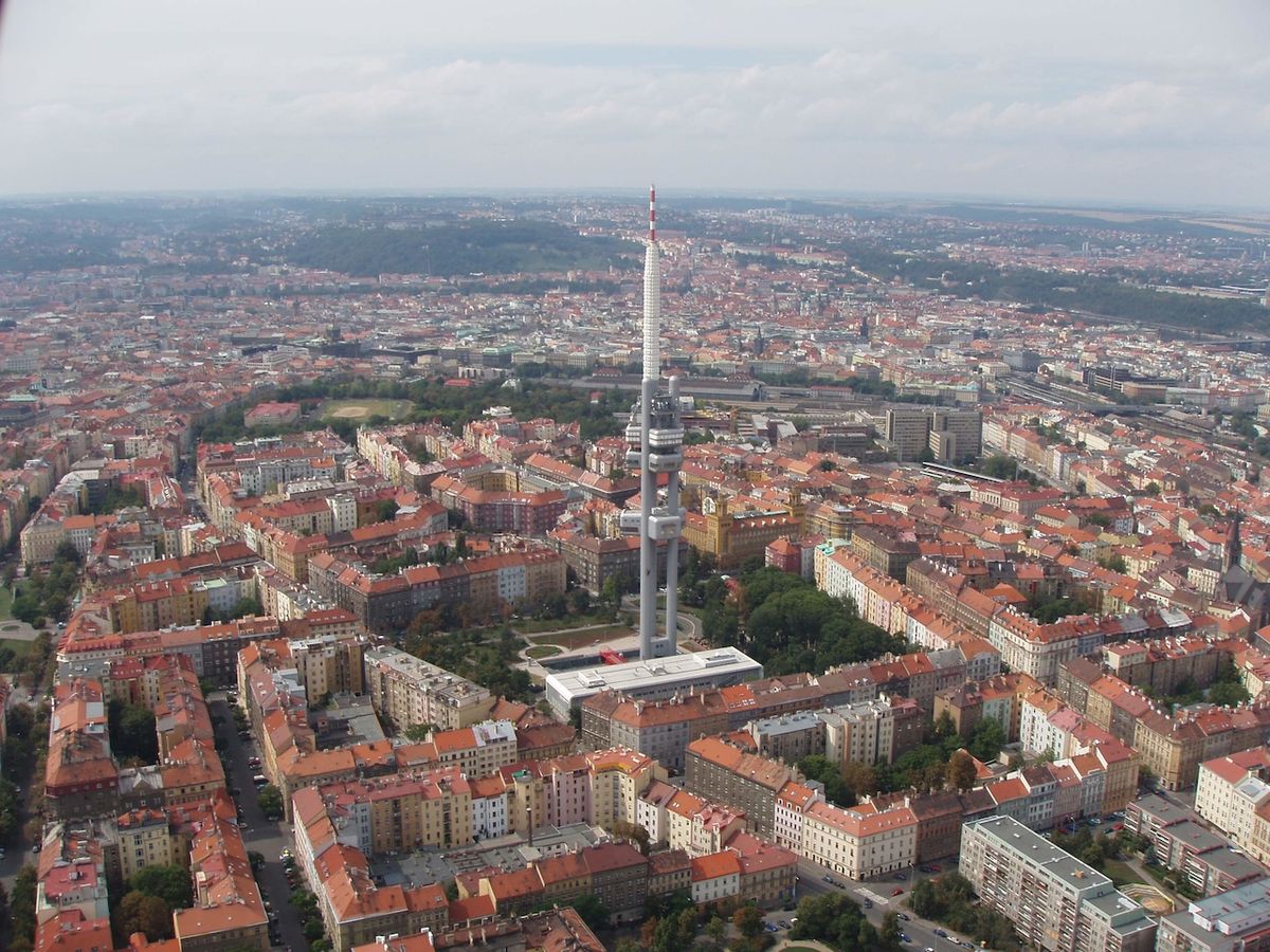 Dominanta Prahy, Žižkovský vysílač (na snímku), měří 216 metrů. Lopatky větrných elektráren v Ralsku dosáhnou ještě o 34 metrů výše .