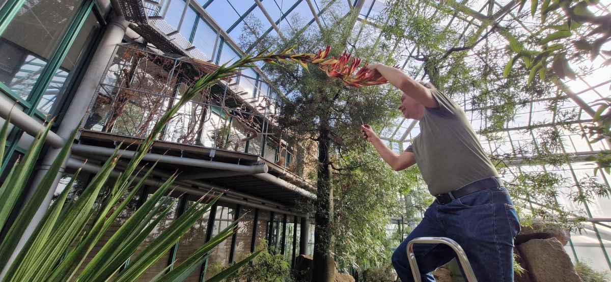 Ještě než se liberečtí botanici ale se současným exemplářem rozloučí, snaží se rostlinu opylovat, aby získali semena pro pěstování dalších jejích nástupců. K tomu jim slouží obyčejný kartáček na zuby, ptáky ve skleníku poletovat nenechávají.