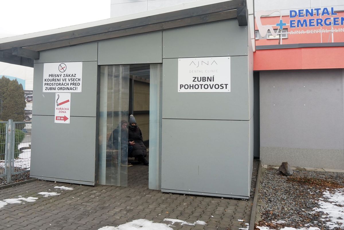 Doprovod a pacienti mrznou před zubní pohotovostí ve venkovní čekárně bez dveří, kde není topení ani toaleta..