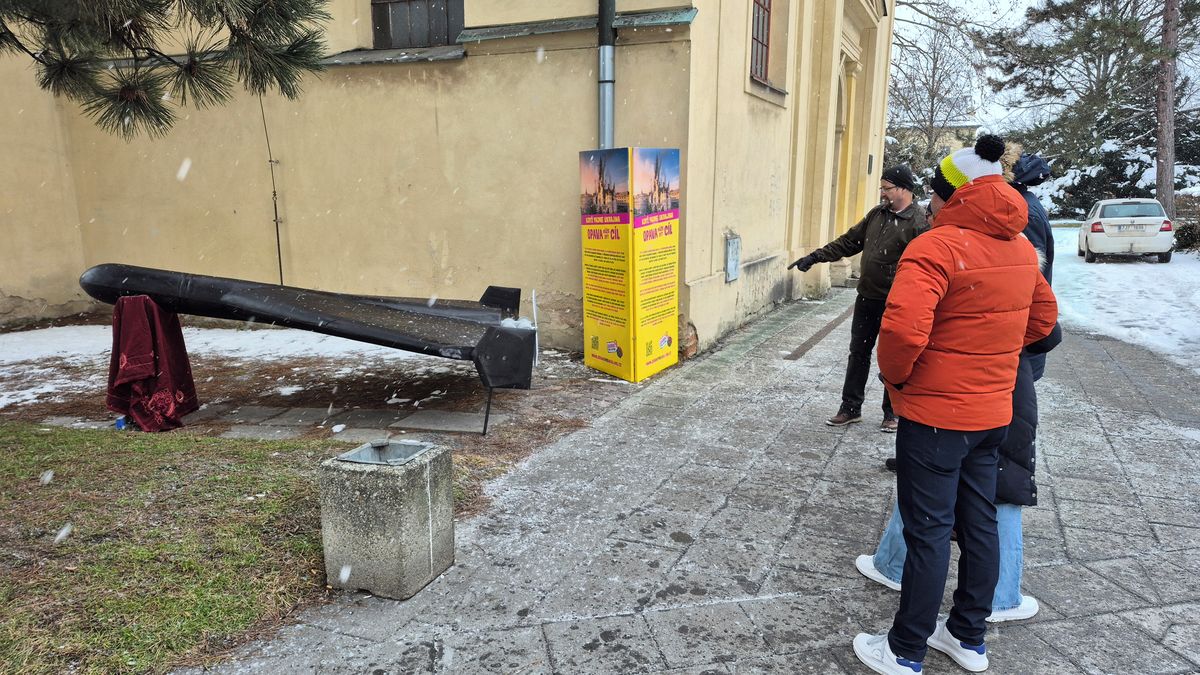 Maketa dronu šáhid je v Opavě umístěna na náhradním místě, v sousedství kostela svatých Janů.