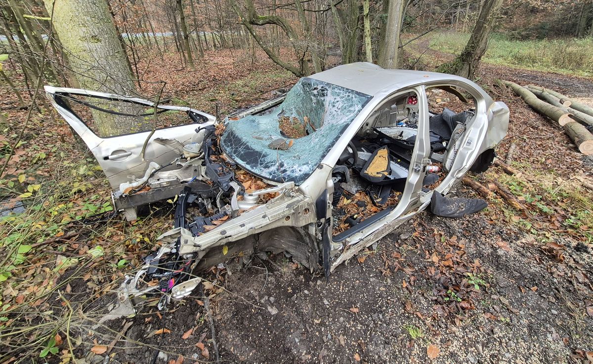 „Skončilo v příkopě, přerazilo přitom tehdy jeden strom,“ popsal muž, jenž nedaleko vraku před pár dny těžil dřevo. Na karambol z roku 2024 si vzpomínal. „Odtáhli to tehdy sem, ať to není na cestě a ani to do ní nezasahuje. A už to tady zůstalo. Každý si tady bral náhradní díly, tady bylo aut. Kluk si sem taky chodil vybírat budíky,“ prozradil s tím, že asi po třech měsících se začalo auto rozpadat.