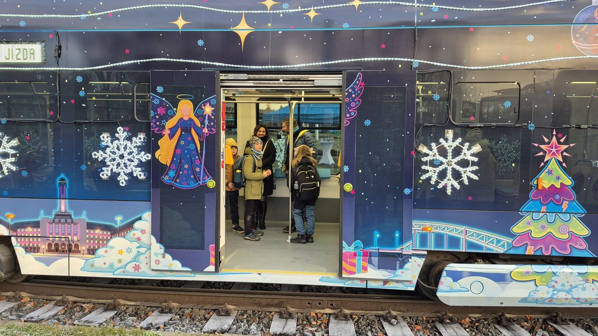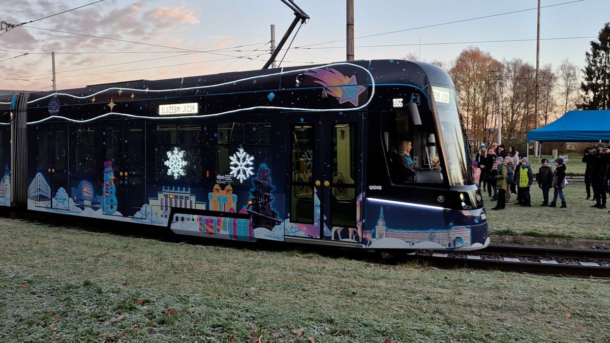 Vánoční tramvaj jezdí po Ostravě od středečního rána.