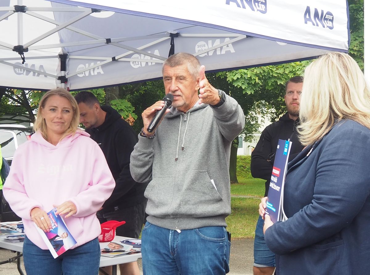 Andrej Babiš na předvolebním mítinku v Dolní Lutyni na Karvinsku, kde lidem řekl, že gigafactory zde nebude.