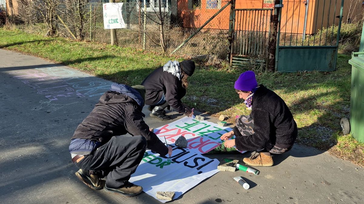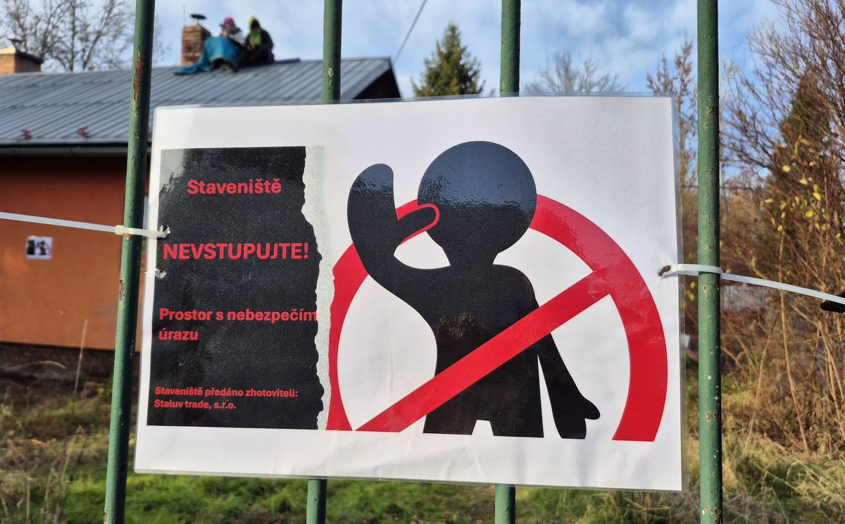 Podporovatelé se na střeše domku střídají, sedí na ní většinou po dvou. Neslezli ani poté, co dva zaměstnanci radnice vyvěsili na dům i plot okolo cedule s nápisy: Staveniště, Nevstupujte, Prostor s nebezpečím úrazu.