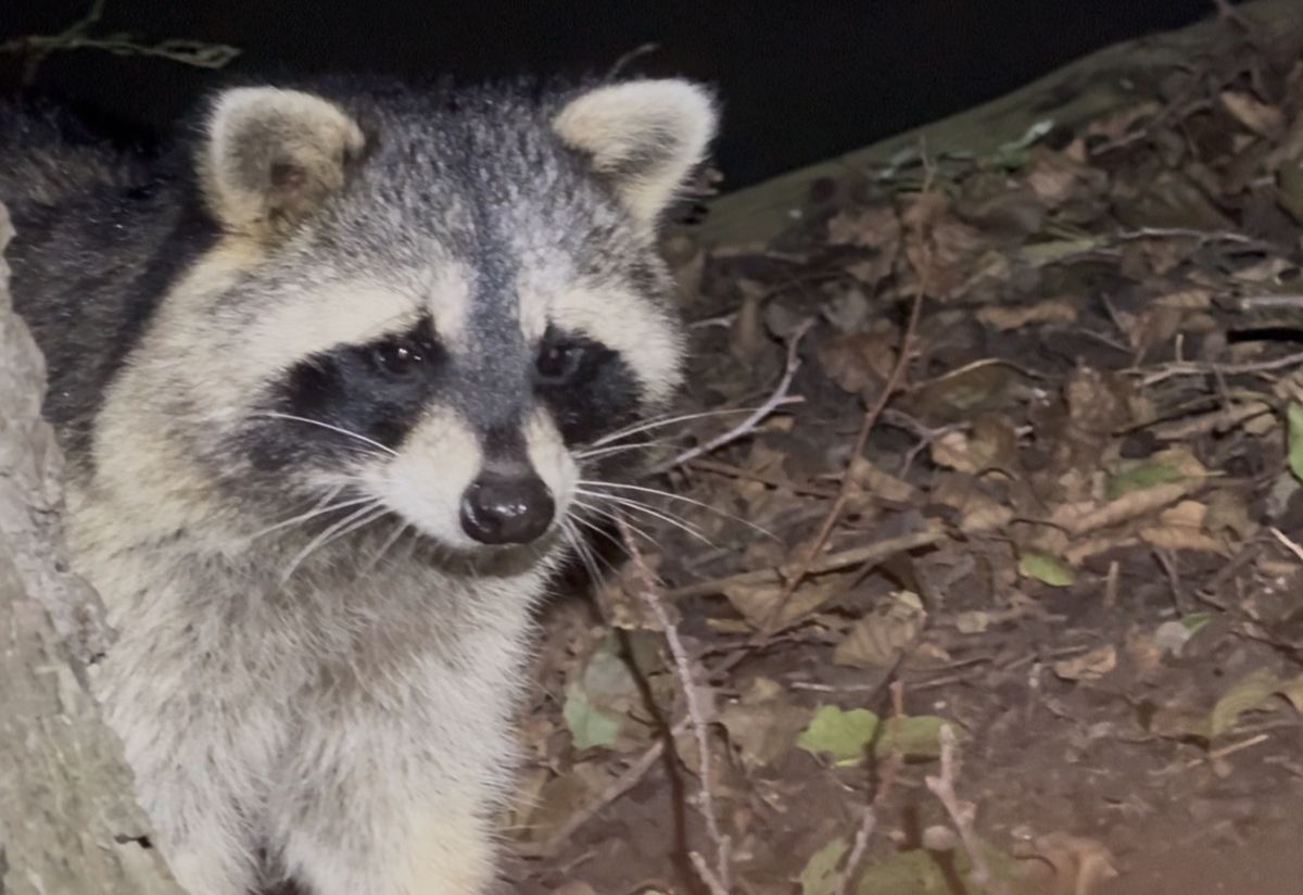 Mýval severní si do ostravské zahrady přišel pochutnat na ořeších.