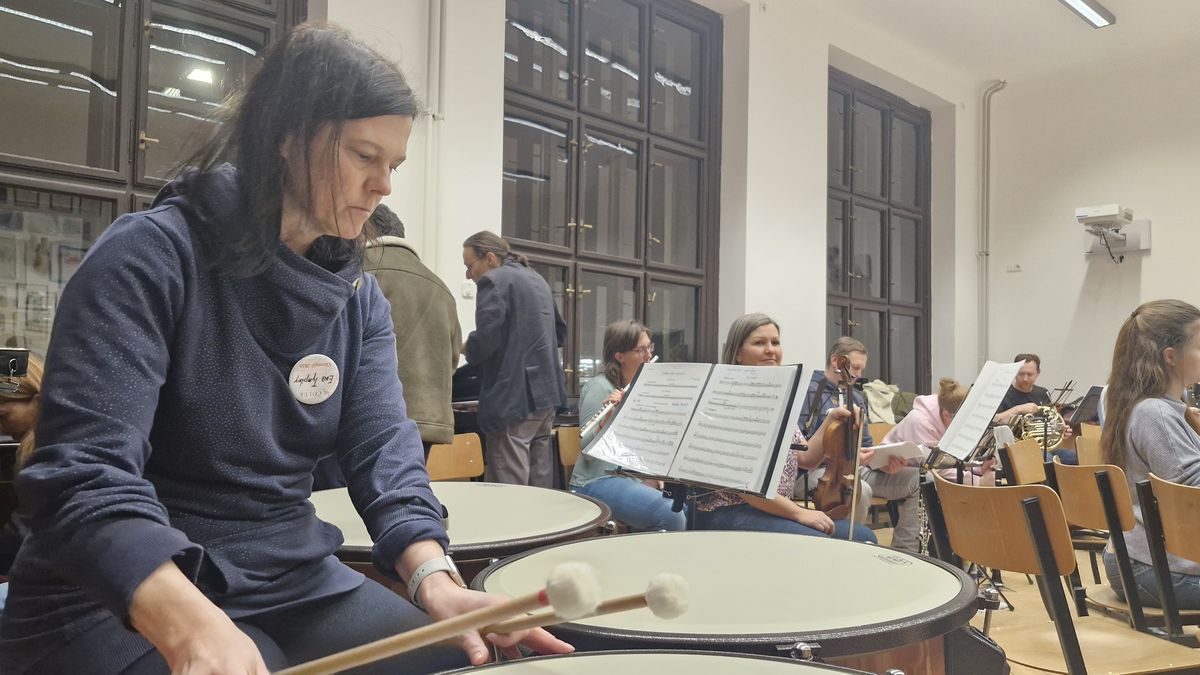 „Takhle jsou ty tympány špatně rozmístěné,“ říká tato kardioložka a přeskupuje hudební nástroj podle správného pořadí „velkej, střední, malej.“ Zanedlouho přijde její premiéra na tento nástroj. Do orchestru jsou třeba tympány a ona se svým hudebním vzděláním na bicí je k tympánům, které jsou do orchestru potřeba, nejblíže. Neprotestovala, páteční trénink brala jako výzvu.