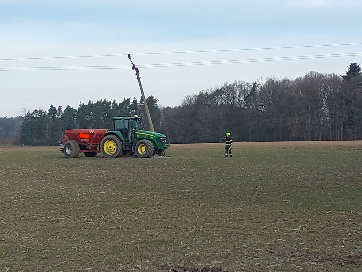 Traktorista srazil při nepozornosti sloup vysokého napětí.