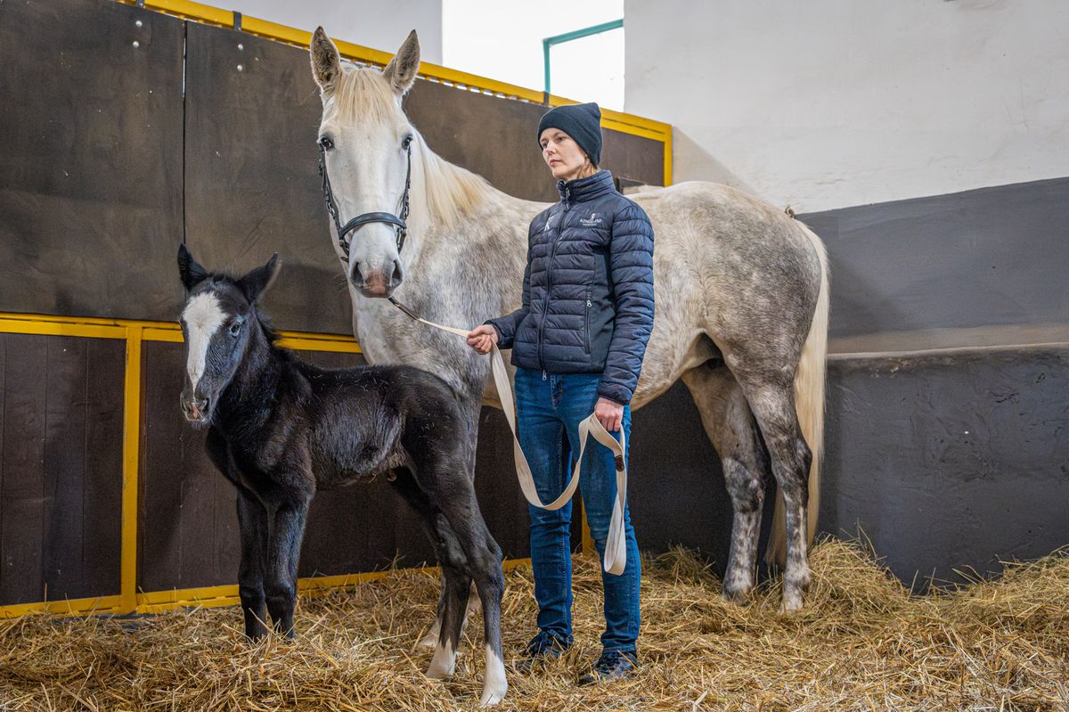„Vzhledem k tomu, že šlo pro klisnu o první porod, byl tady nejen porodník, ale i ještě jeden ošetřovatel jako pomocník, tak abychom klisně porod co nejvíce usnadnili. Máme zavedený takový postup, že když noční hlídač zpozoruje blížící se porod, jsme v kontaktu a sledujeme na kamerovém systému, jak se porod vyvíjí. Ve vypuzovací fázi jsme hříběti pomohli tak, že jsme mu ovázali nožičky na porodní provázky a s pomocí dvou ošetřovatelů se hříbě narodilo,“ řekla zootechnička národního hřebčína Jitka Raichová.