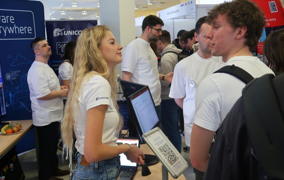 Letošní ročník nalákal 118 firem. Od A do Z. Od armády, přes Prazdroj a Škodovku, až po ZAT, technologickou firmu z Plzně, ta hledá třeba programátory a vývojáře.