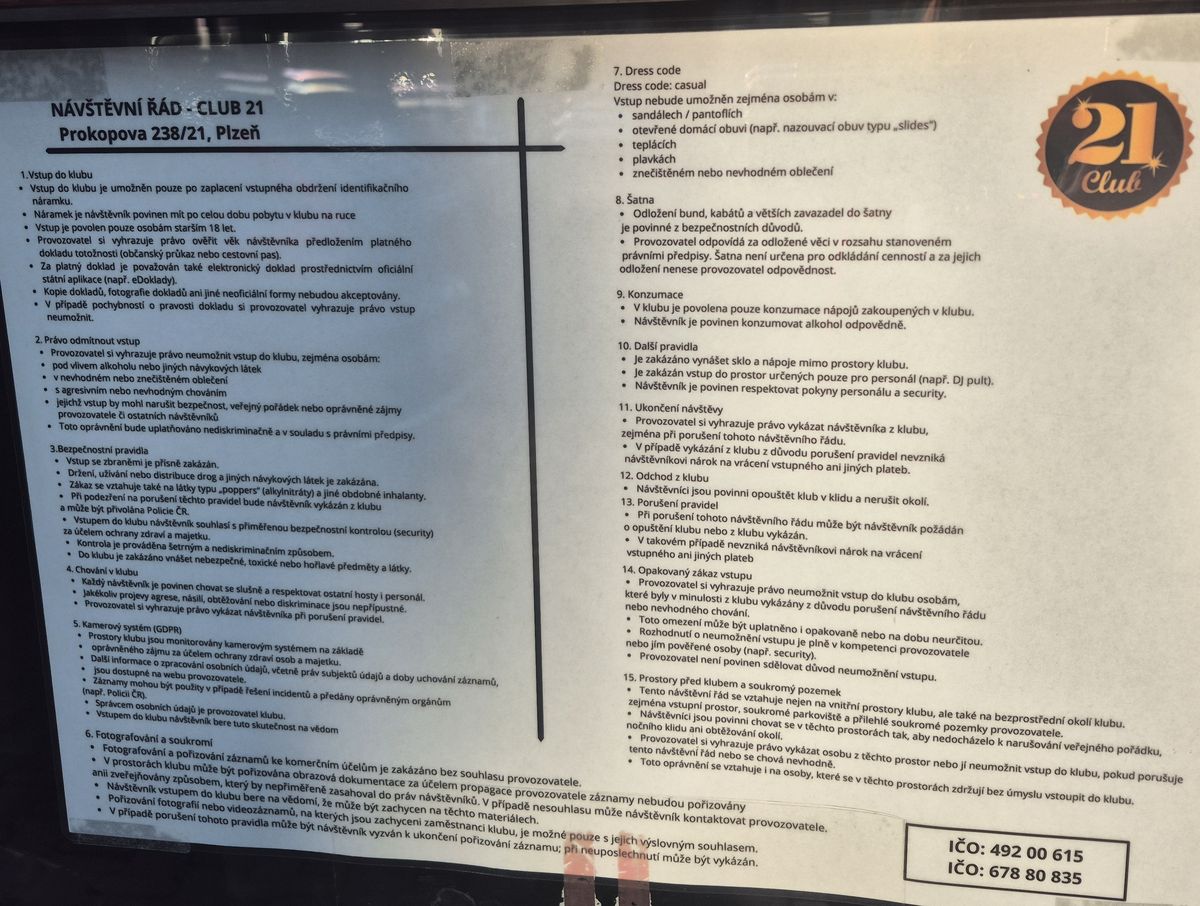 Pokud má klub plnou kapacitu nebo pořádá soukromou akci, příchozí odmítá. „To se nám děje každý víkend. Vyhrazujeme si právo osoby nevpustit, stejně jako zasáhnout, když porušují návštěvnický řád,“ uzavřel Ježek.