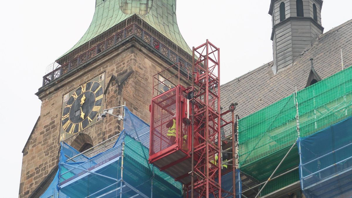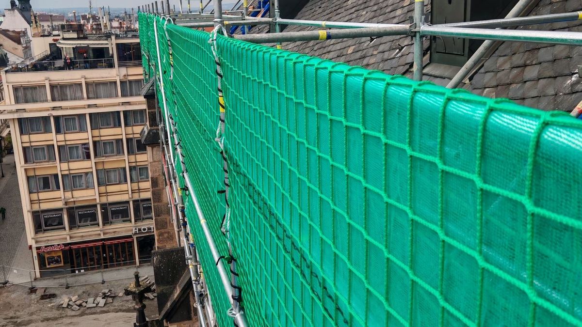 Na stavbě se budou každý den pohybovat pracovníci různých profesí. „Pokrývači, tesaři, kameníci, elektrikáři, klempíři,“ zrekapitulovala Hánělová. Nahoru vyjedou vnějším výtahem, po střeše se budou pohybovat za pomoci tesařských žebříků a pomocných dřevěných lávek. „Samozřejmě jsou všichni jištění na úvazech,“ konstatovala Hánělová.