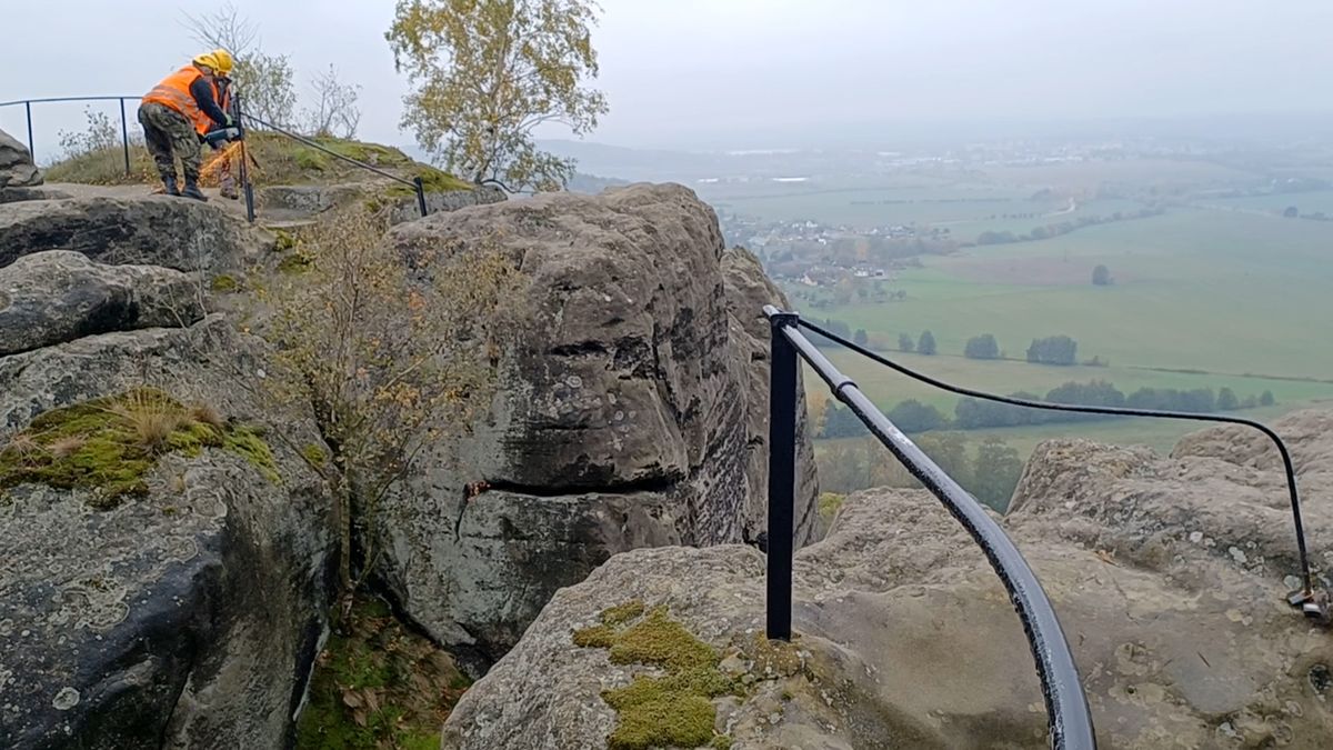 „Použijeme impregnovaný dub a kovové konstrukce budou natřené na černo, všechno bude mít jednotný design, samozřejmě to musí být funkční, bezpečné, ale i esteticky přívětivé,“ dodal Soukup. Odřezaný materiál snášejí dělníci na deponii a vše se bude postupně odvážet. „Na jaře pak přiletí vrtulník, který by nám sem měl nanosit potřebný materiál,“ potvrdil Soukup a upřesnil, že by se mělo jednat zhruba o 30 tun železa, 15 tun dřeva a 5 tun speciálního materiálu na výplně poškozených skal.